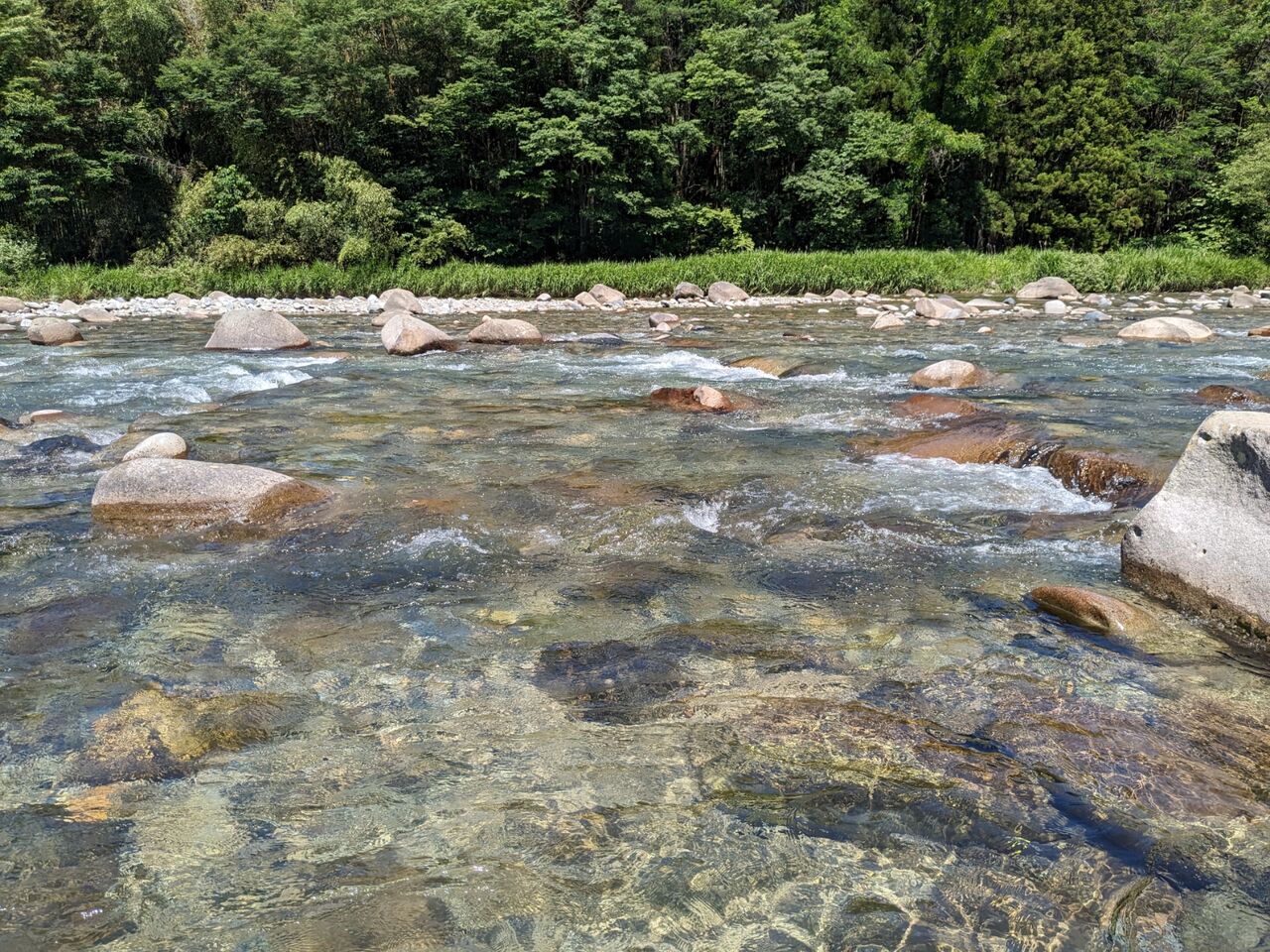 その間本流とは思えない程透き通った深瀬をドライフライで攻めたら、5回程当りが有ったがフッキングは出来なかった。真夏の日中は厳しい。良型のアタリは1回だけ。